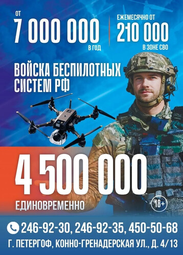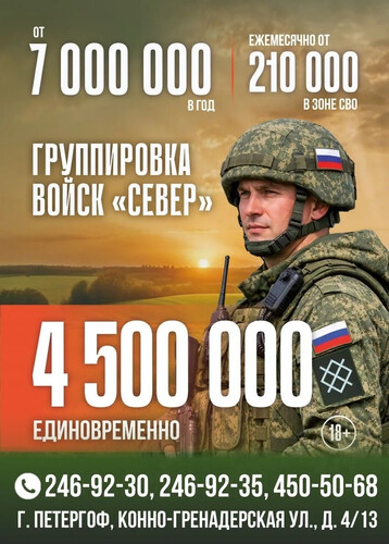Санкт-Петербург создаёт все условия для заключения контракта на военную службу в Вооружённых силах Российской Федерации и усиливает меры поддержки. Для поступивших на военную службу по контракту размер выплаты составит от 7 млн рублей в год, из них 4,5 млн рублей — сразу после заключения контракта.
